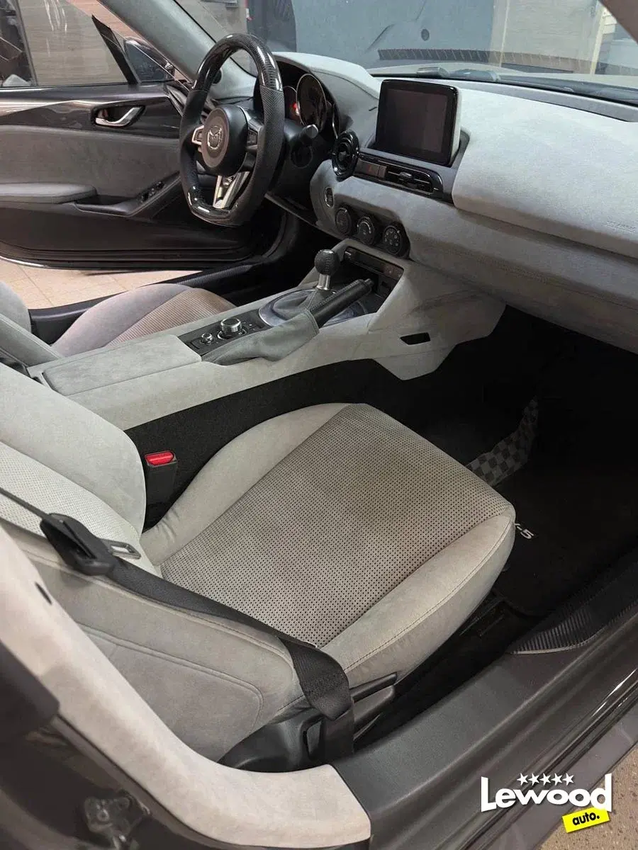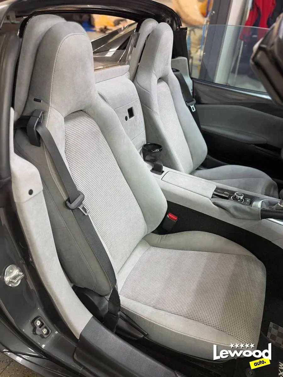 Мы полностью перетянули салон Мазды в новый материал. У авто не было никаких повреждений, но владелец машины захотел стилизовать ее под себя и добавить уникальности в дизайн. Вместе с клиентом мы подобрали подходящий материал — светло-серый, приятный на ощупь и визуально. Мы использовали его для всего салона, кроме руля. Руль сделали более агрессивным и менее марким — с перфорацией в гоночном стиле.