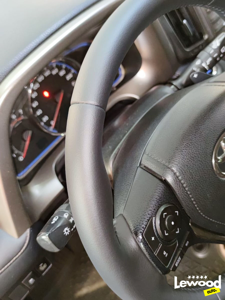 В Lewood привезли Тойоту с «убитым» рулем. Краска отвалилась кусками, и наружу вылезла голая кожа. Причем руль пострадал по всей окружности — не было ни одной «живой» зоны. Наши мастера принялись за работу. Укрыли все поверхности вокруг, заклеили кнопки на руле и центральную часть, чтобы не испачкать краской и не задеть при подготовке. Сначала убрали всю старую краску и оставили «голый» руль. Полностью почистили и обезжирили поверхность кожи, подготовили ее к окрашиванию с помощью специальных составов. В несколько слоев нанесли черную краску и посушили. Руль скинул десяток лет и стал соответствовать остальному салону Тойоты.