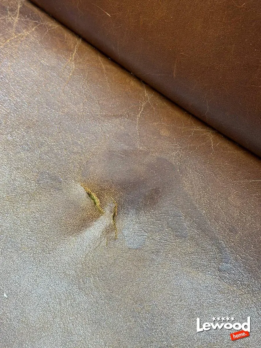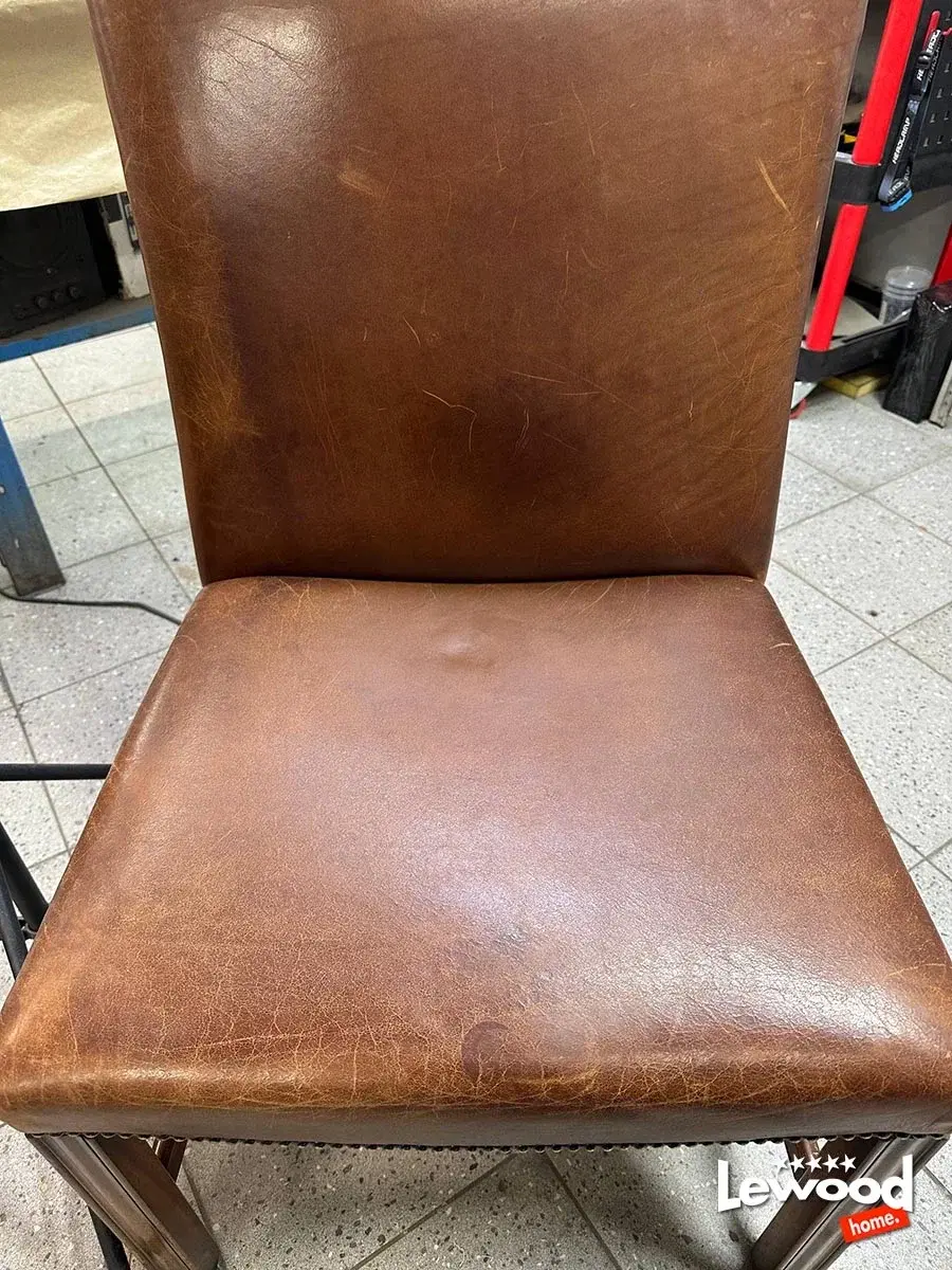 Кожа на любимых предметах мебели имеет особенность быстрее изнашиваться. Например, возьмем кухонный стул, который привезли в Lewood на реставрацию. На сиденье регулярно что-то разливали и роняли, на него садились в разной одежде, ерзали. На нем спали домашние животные. В общем, стулу приходилось сложно. И это не могло не отразиться на его внешнем виде. Кое-где на поверхности кожи появились пятна и мелкие царапины. С возрастом и из-за пролитых жидкостей кожа стала более жесткой и покрылась возрастными морщинами. На сиденье пара таких морщин прорвалась, и получились дырки. С ними к нам и обратился владелец стула.