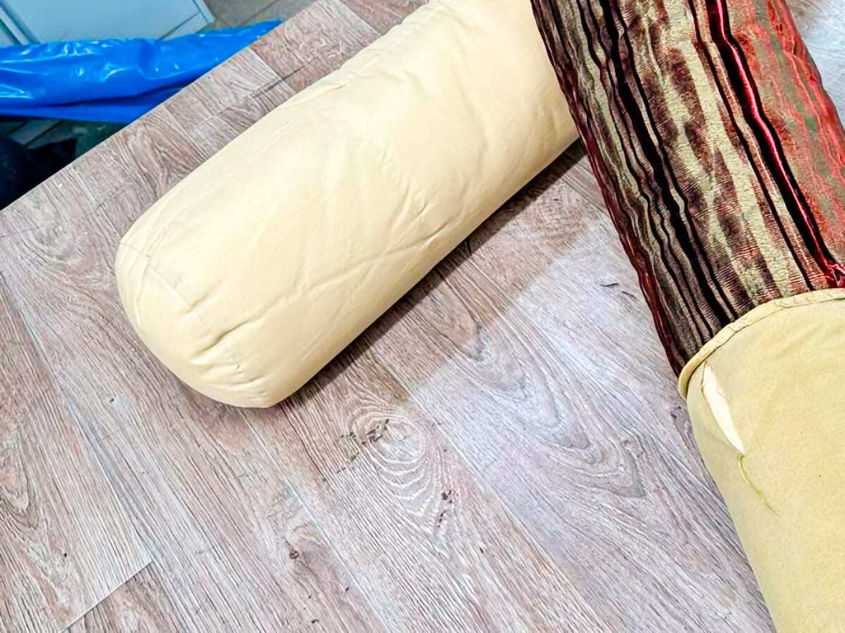 В мастерскую Lewood обратились с задачей вдохнуть жизнь в любимый диван. Точнее в его подушки-валики. Бежевая ткань истрепалась до дыр, наружу вылезли нитки и «внутренности» валика. В этом случае спасти может только перетяжка. Наши мастера забрали подушки в мастерскую и взялись за работу.